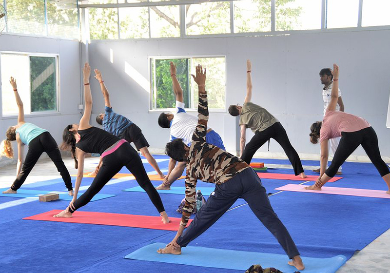 Yoga classes begin with breathing exercises. The body is then gently put into movement, in particular with the Sun Salutations.